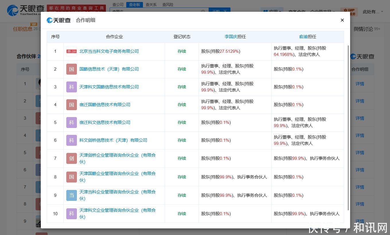 上述三家企业均成立于2017年10月,法定代表人分别为为李国庆、俞渝,注册资本及出资额均为500万人民币,经营范围涉及信息技术开发、物流仓储设施的安装与开发、道路普通货物运输、企业管理咨询、企业营销策划等。股东及合伙人信息显示,上述企业均由李国庆、俞渝共同持股或出资。